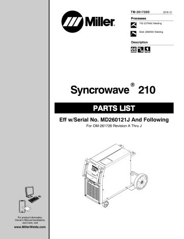 Miller Syncrowave 210 Part Manual For Product Information, Owner’s Manual Translations, And More, Visit.