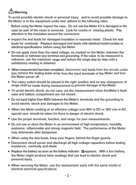 Use the multimeter only as instructed in this operating manual, or the device may be damaged, and you may be seriously injured. User manual digital clamp multimeter model no.: Please read the relevant information carefully.
